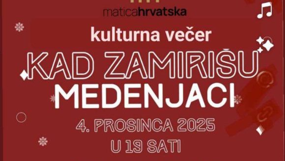 U Gradskoj knjižnici i čitaonici Vinkovci, 4. prosinca u 19 sati, započeti će kulturna večer naziva “Kad zamirišu medenjaci”. Ženski vokalni sastav “Lira” pjevat će božićne i adventske pjesme, članice Lire, Carla T Bošnjak i Mirjana Marijanović, održat će reviju suvremene odjeće s etno motivima, a vinkovačka akademska umjetnica Ana Marijanović će izložiti svoje grafike.