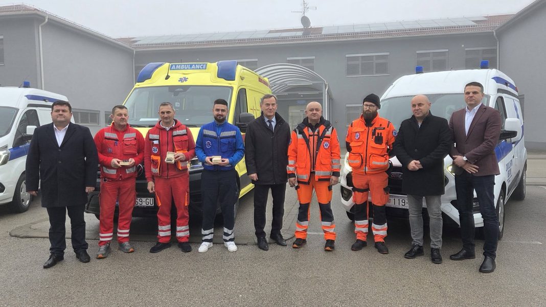 Vukovarsko-srijemski župan Ivan Bosančić uručio je ključeve pet novih vozila – jednog Hitne pomoći i četiri sanitetska Zavodu za hitnu medicinu Vukovarsko-srijemske županije