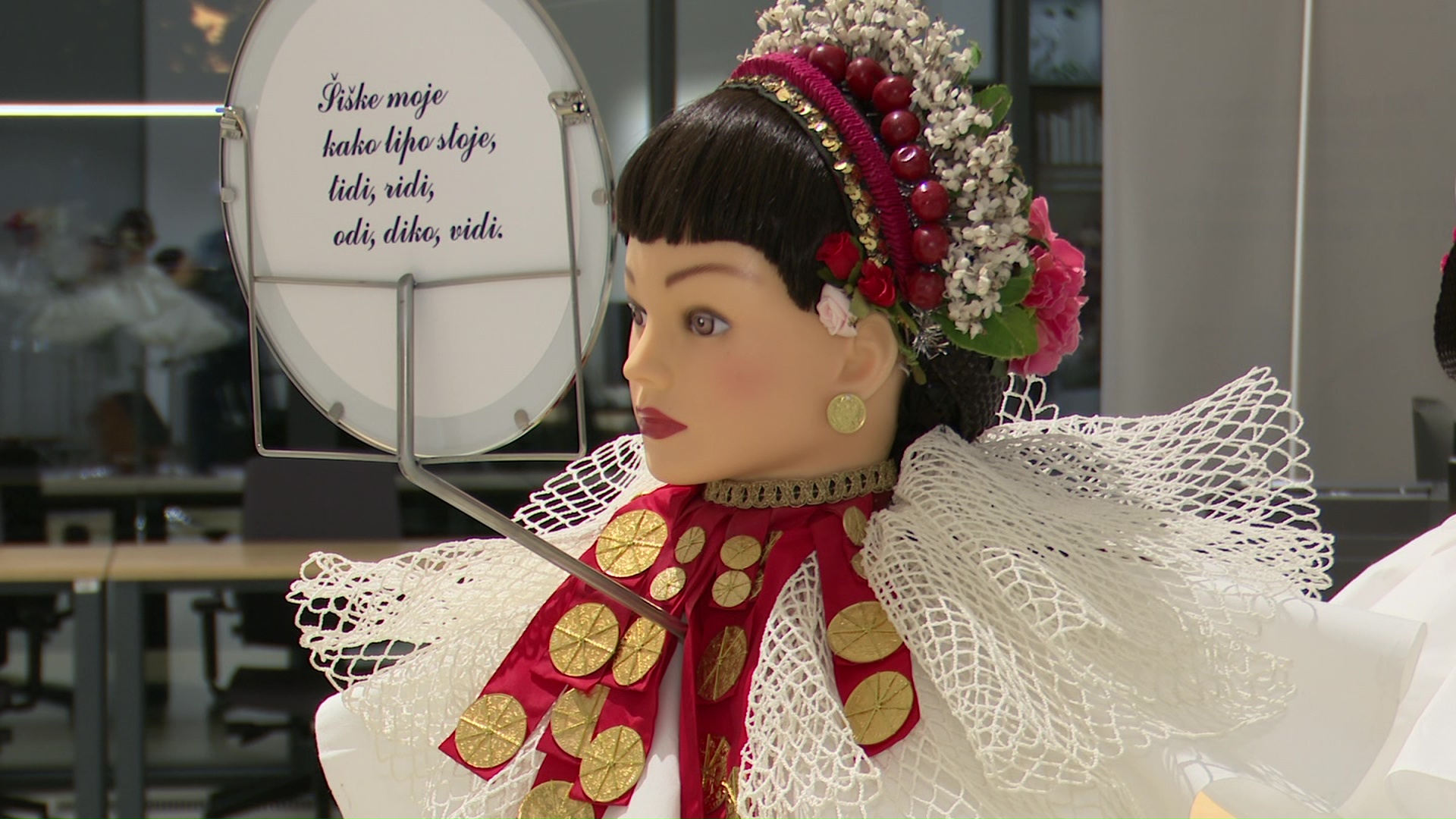 – “Ovdje je izložba tradicijskih frizura Hrvatske, moram reći, od 63 frizure dvije su izvan Hrvatske, jedna iz BiH, druga iz Srbije, Hrvatskog življa, koje smo pripremali i radili 5 godina zajedno za Ministarstvom kulture Republike Hrvatske, a ove godine se priključio ovom projektu i Grad Vinkovci i Županija Vukovarsko-srijemska.” , istaknula je predsjednica Kulturnog centra Gatalinka, Blanka Žakula.